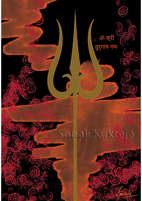 This artwork - Shakti is inspired by Durga, the feminine nature of God, appears in the Rig Veda, one of the Indian scriptures. She has been a warrior goddess. She is depicted fierce in action, yet her face is calm and serene. She is protective and violent not because of her hatred, egotism or getting pleasure in violence, but because she acts out of necessity, for the love of the good, for liberation of those who depend on her, and a mark of the beginning of soul's journey to creative freedom.
